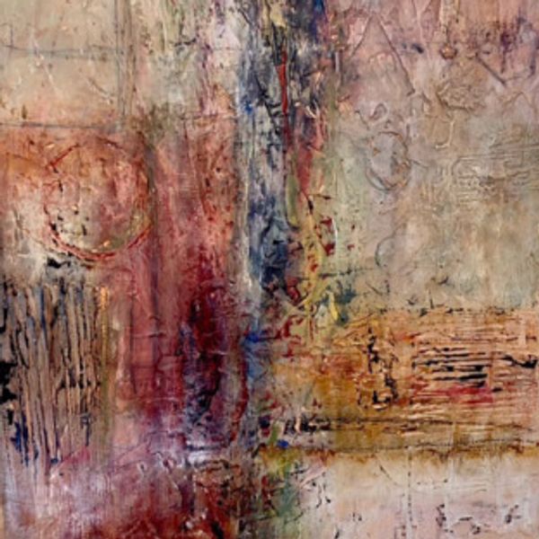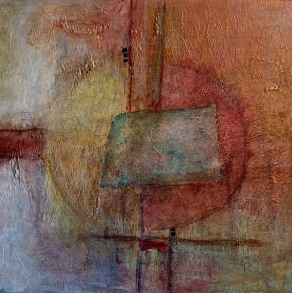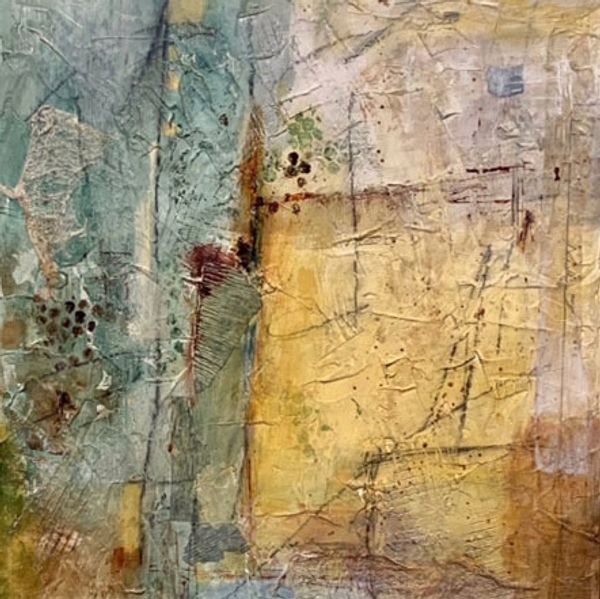 When I see a blank canvas, my brain gets overwhelmed with possibilities, and I freeze. This was my dilemma until I discovered plaster as a color substrate over the canvas. All of a sudden, the texture started to speak to me and to influence the shapes and designs that emerged onto the canvas. The infinite became defined as the flat canvas now had a sculptural composition. Painting became much more doable and less threatening. Plaster is an extremely porous medium, so to accomplish definition, I use layers of thin washes of acrylic paint, and allow the plaster texture to help define the stronger color.